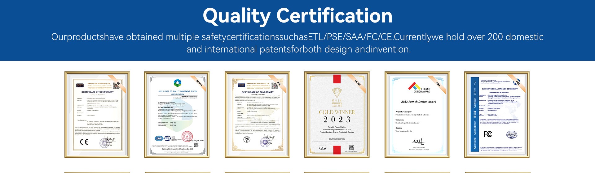 5.Certification:we have acquired ETL,SAA,PSE etc.certificate, and our products have appearance design patent.